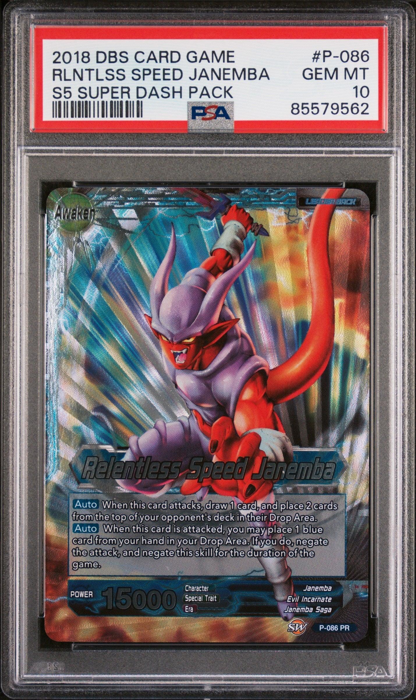 2018 DRAGON BALL SUPER SUPER DASH RLNTLSS SPEED JANEMBA #P-086 - PSA 107 Bucks a Pop