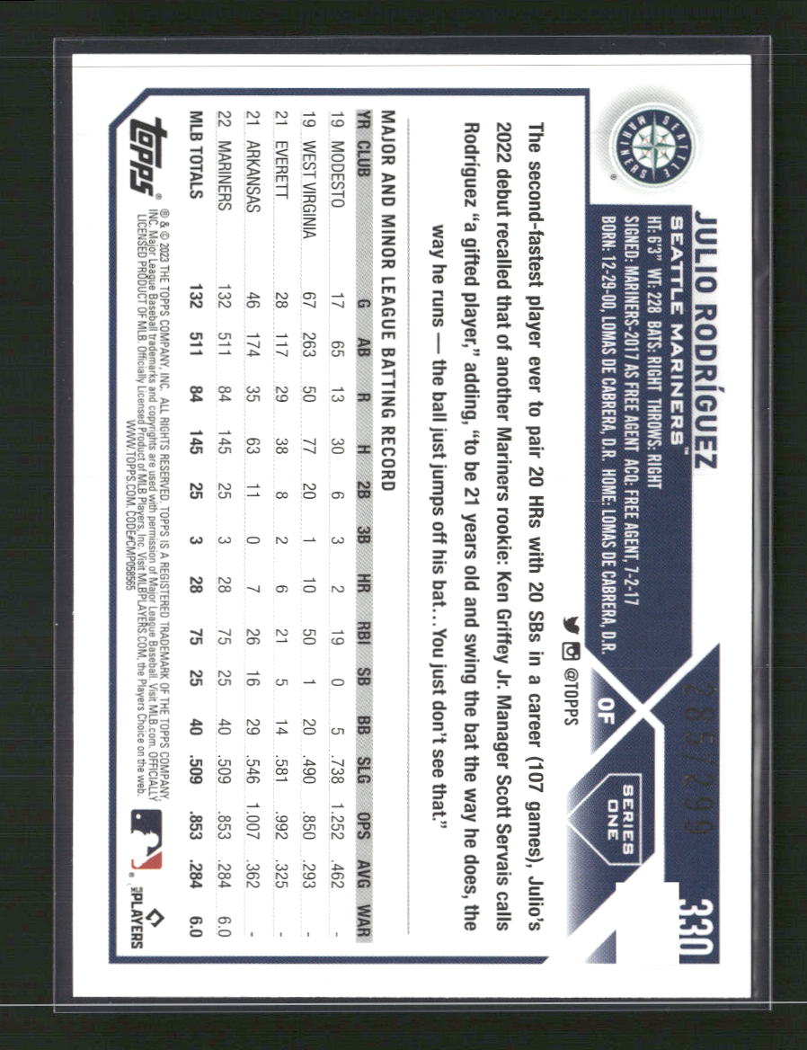 Julio Rodríguez 2023 Topps #330 Orange Foil #/299Orb Sports Cards & Collectibles