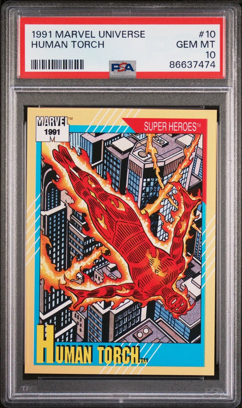 1991 MARVEL UNIVERSE HUMAN TORCH #10 - PSA 10