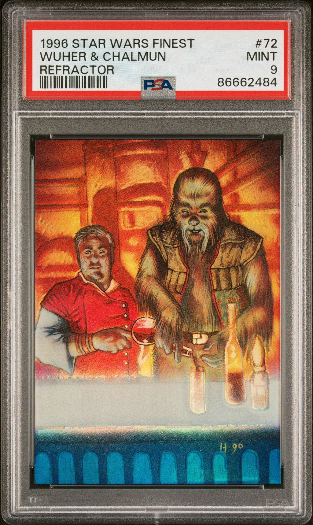 1996 STAR WARS FINEST WUHER & CHALMUN REFRACTOR #72 - PSA 9