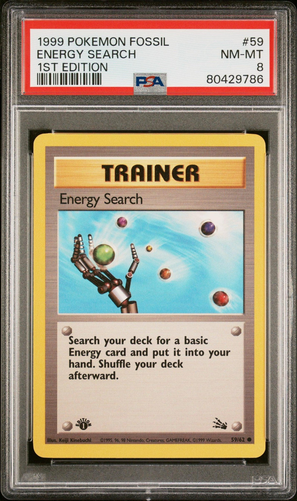 1999 POKEMON FOSSIL ENERGY SEARCH #59 FIRST EDITION - PSA 8