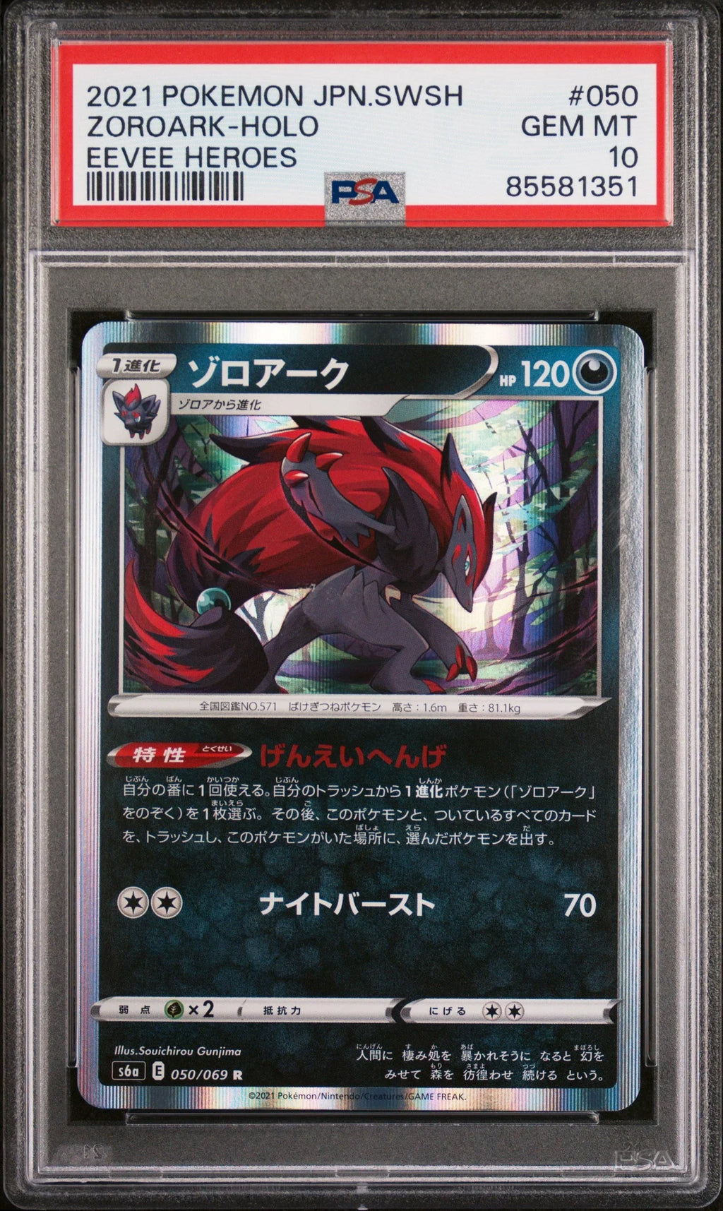 2021 POKEMON JAPANESE SWORD & SHIELD EEVEE HEROES ZOROARK-HOLO #50 - PSA 10