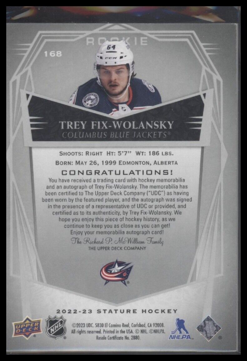 2022-23 Upper Deck Stature #168 Trey Fix-Wolansky Auto Patch Design-Photo Variant
