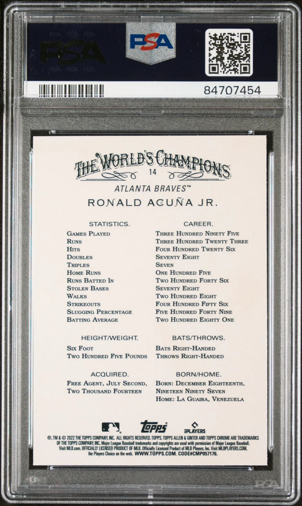 2022 TOPPS ALLEN & GINTER CHROME RONALD ACUNA JR. #14 - PSA 10