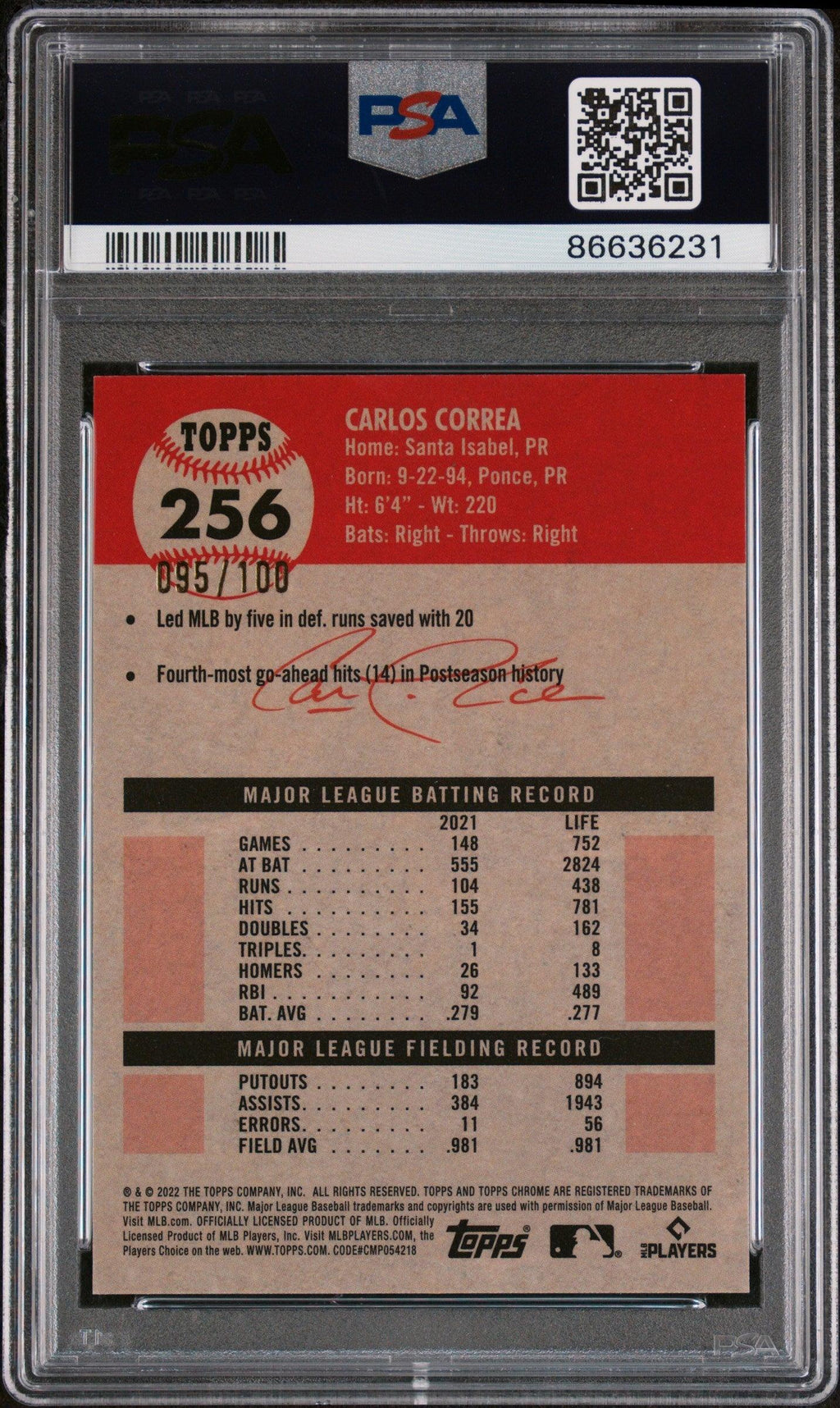 2022 TOPPS CHROME PLATINUM CARLOS CORREA RED ATOMIC REF 256 PSA 10