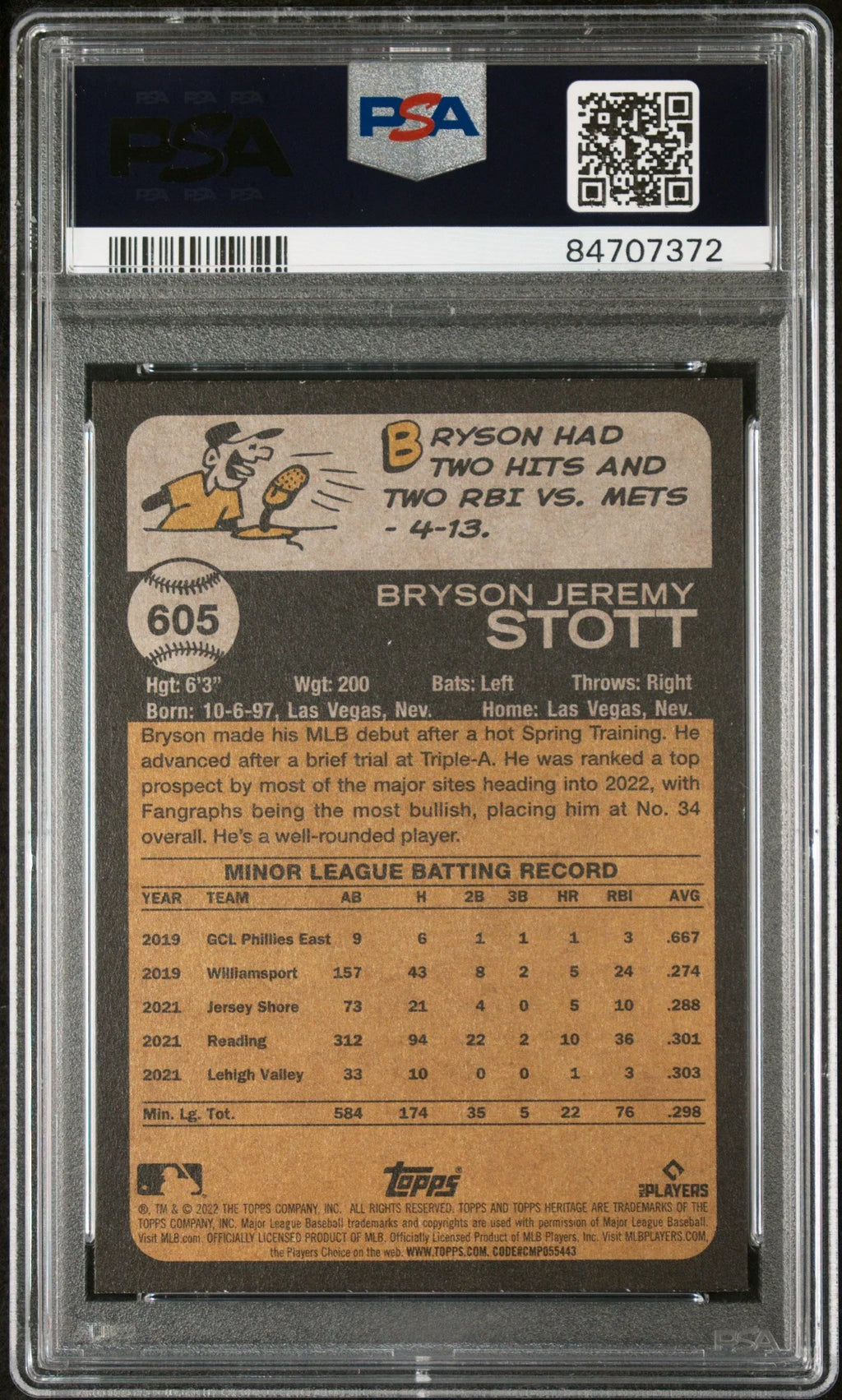 2022 TOPPS HERITAGE BRYSON STOTT #605 - PSA 10 ROOKIE CARD