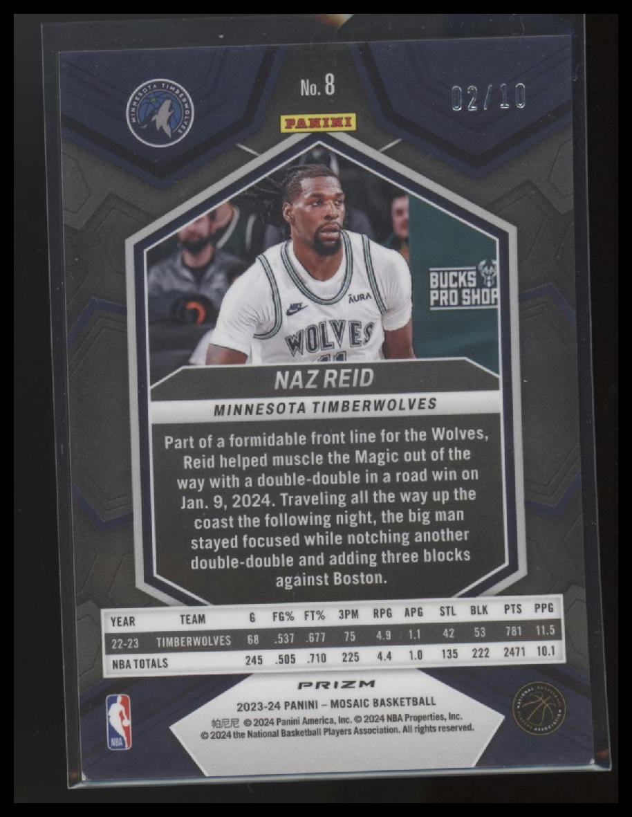 2023-24 Panini Mosaic #8 Naz Reid Gold #/10