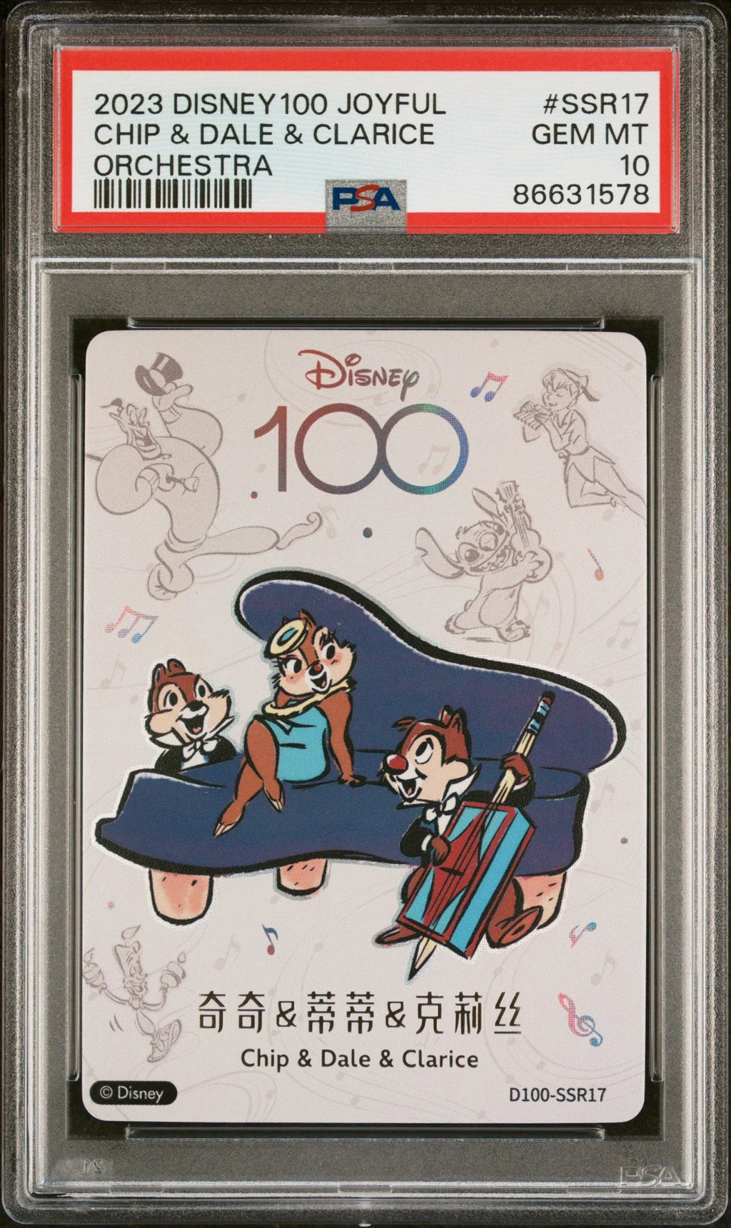 2023 CARD FUN DISNEY 100 JOYFUL ORCHESTRA CHIP & DALE & CLARICE SSR17 PSA 10