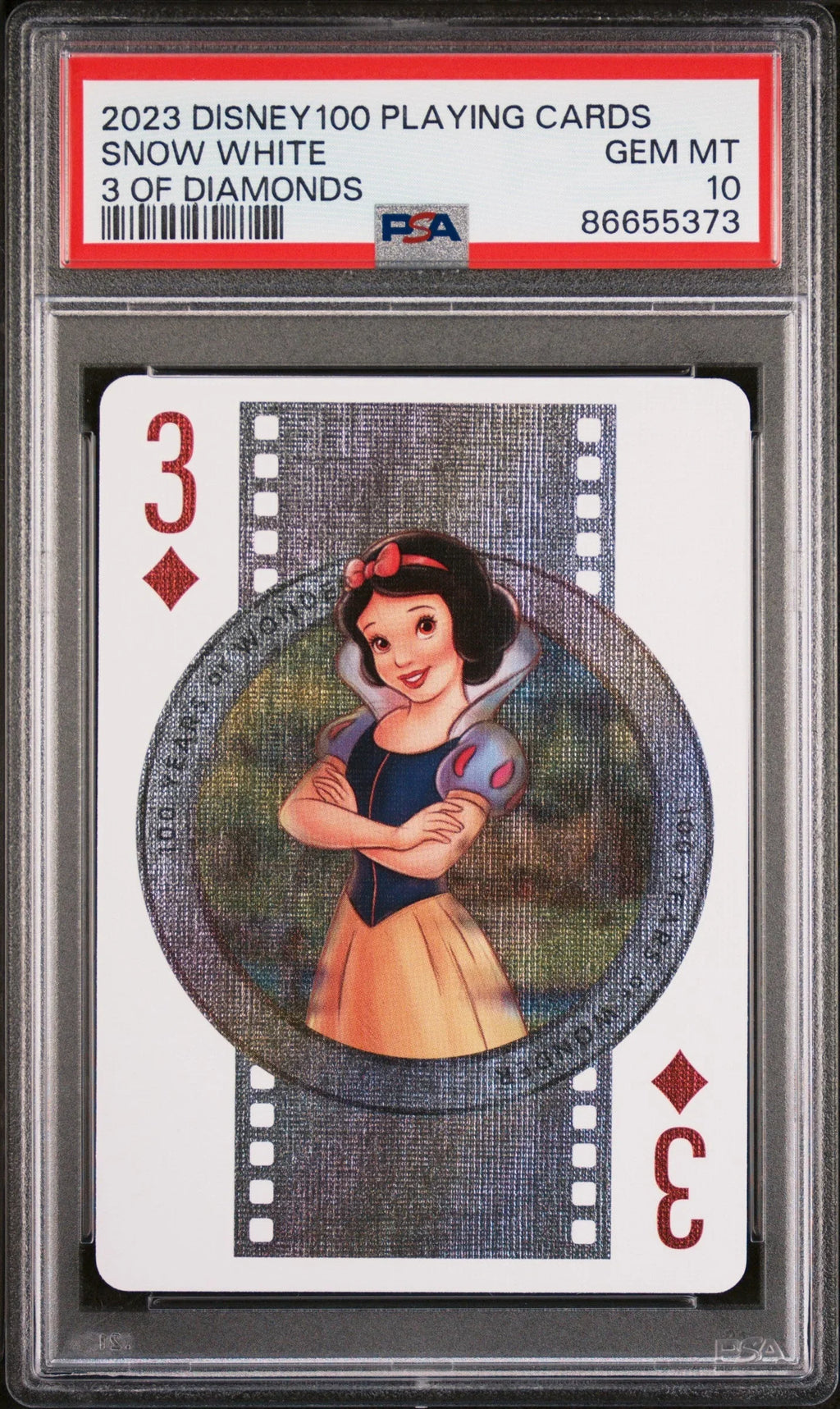 2023 DISNEY 100 PLAYING CARDS SNOW WHITE 3 OF DIAMONDS PSA 10