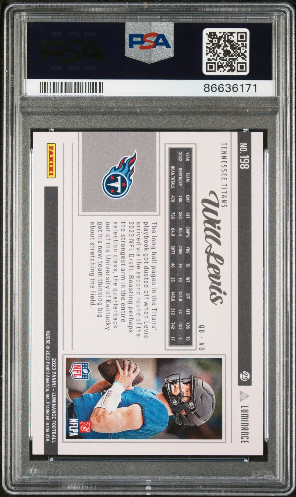 2023 PANINI LUMINANCE WILL LEVIS #198 - PSA 10 ROOKIE CARD