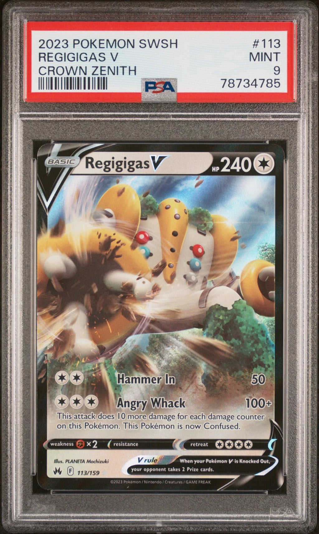 2023 POKEMON SWORD AND SHIELD CROWN ZENITH REGIGIGAS V #113 PSA 9