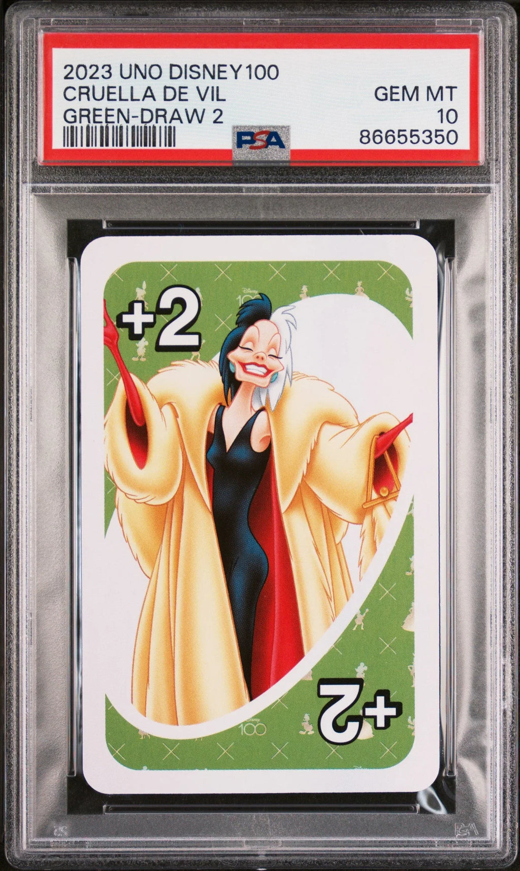 2023 UNO DISNEY 100 CRUELLA DE VIL GREEN DRAW 2 PSA 10