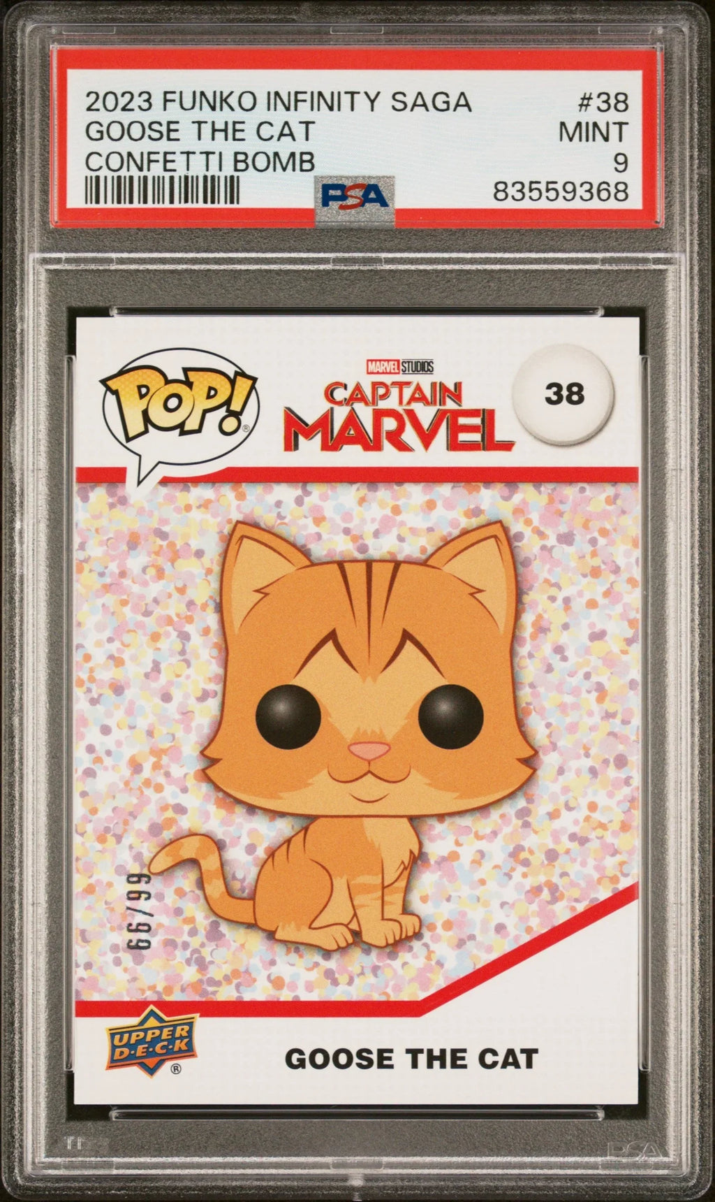 2023 UPPER DECK FUNKO POP MARVEL GOOSE THE CAT CONFETTI BOMB #38 PSA 9