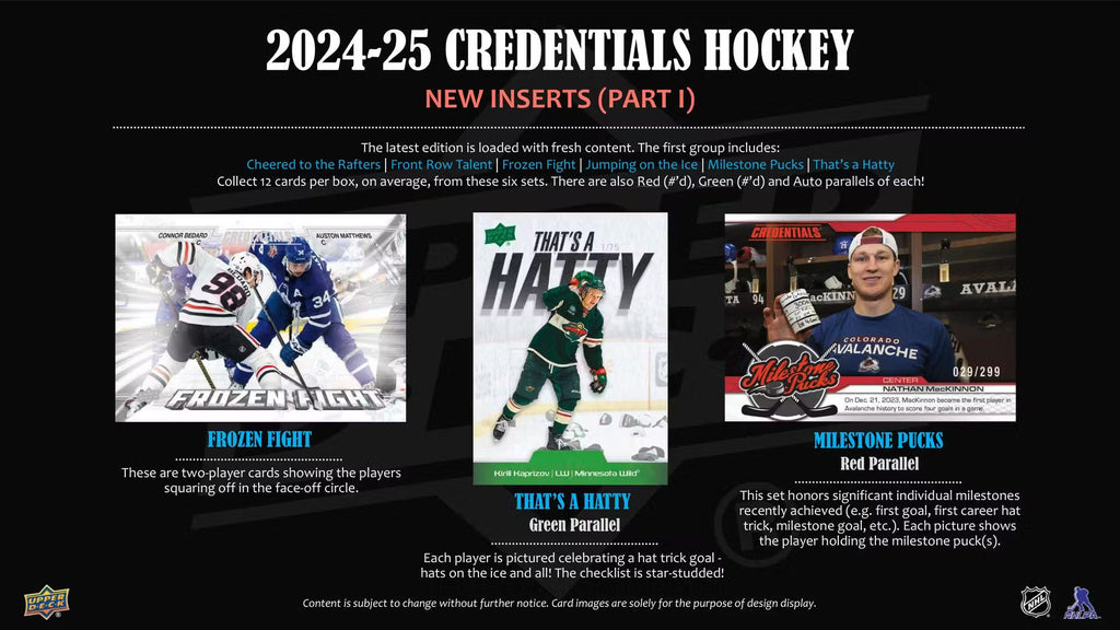 SPECIAL ADDITION! When you pick up a case, box or pack of 2024-25 Credentials Hockey, look for a redemption card for an autographed Upper Deck Authenticated jersey from one of the following four players: