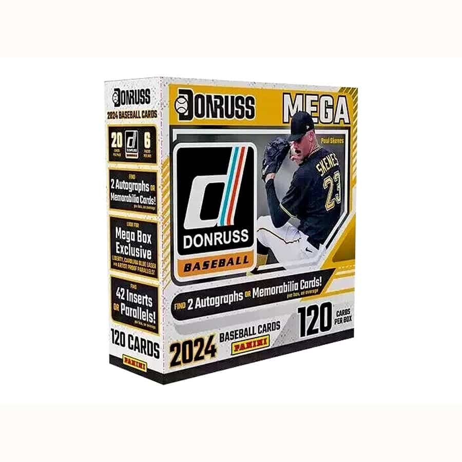 Donruss Baseball makes its return in 2024, showcasing a set full of young stars, Hall of Fame greats, and legends of the game! BOX BREAK 2 AUTOGRAPHS OR MEMORABILIA 24 BASE RATED PROSPECTS 18 OPTIC 24 INSERTS/PARALLELS Look for retail-exclusive parallels such as Orange Ice, Green Velocity, and the ultra-rare Black Finite! Find unique Autograph and Memorabilia sets such as Signature Series and Retro 1984 Materials, each with exclusive parallels in retail!