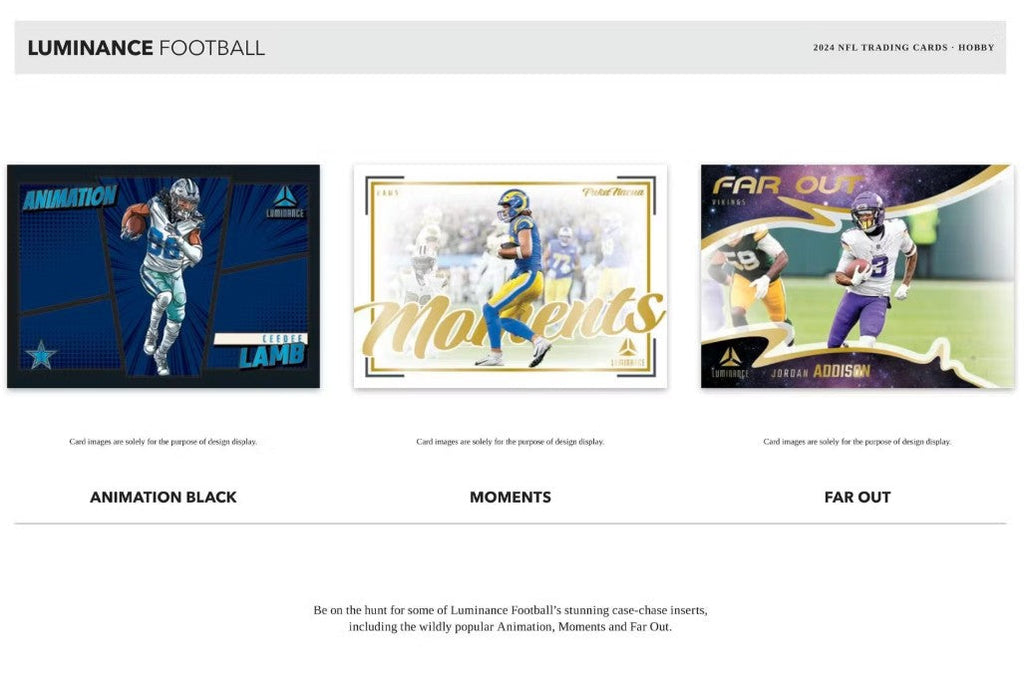 Be on the hunt for some of Luminance Football's stunning case-chase inserts, including the wildly popular Animation, Moments and Far Out.