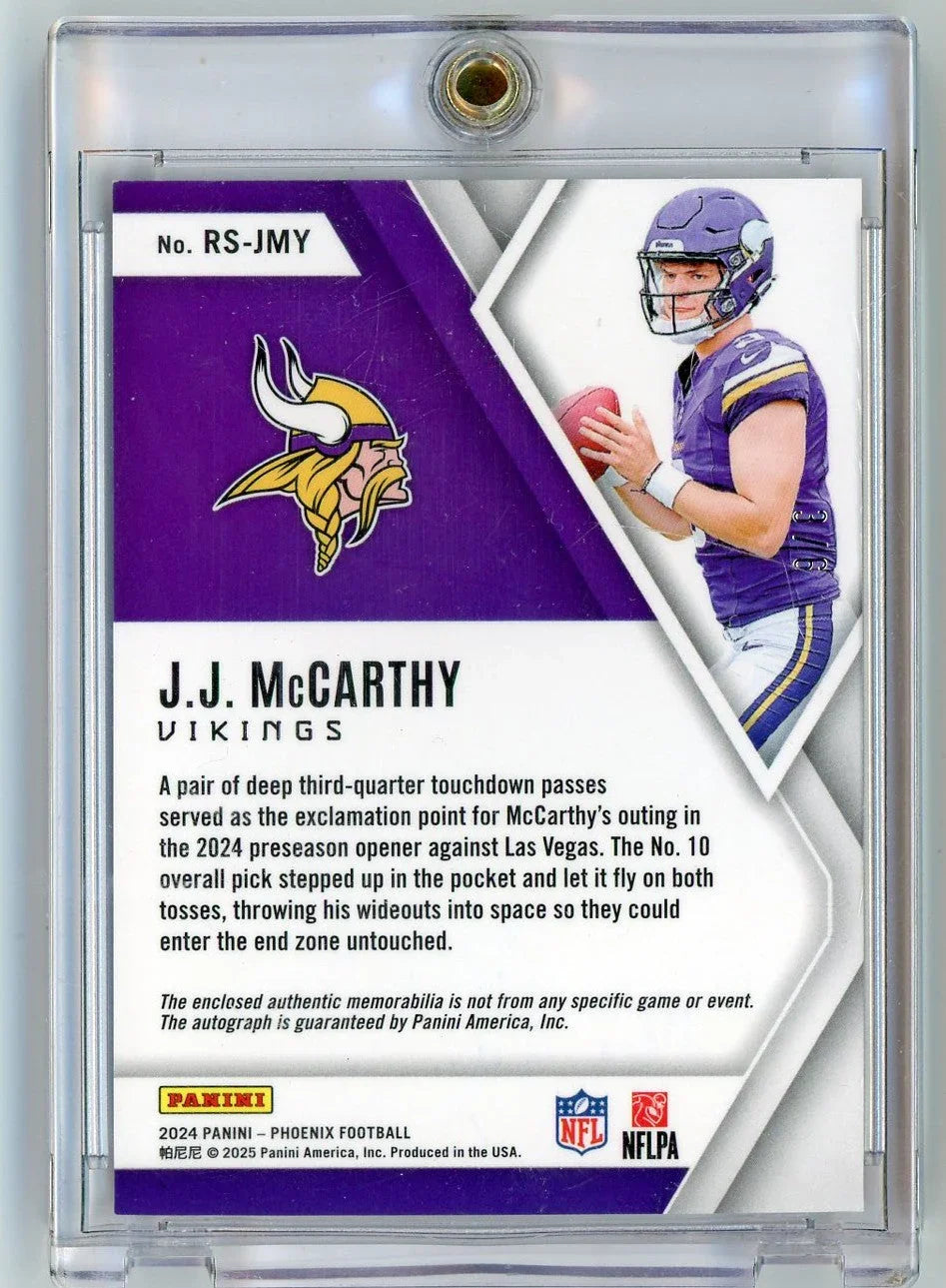 2024 Panini Phoenix Rookie Silhouettes JJ McCarthy #RS-JMY Rookie Patch Auto RPA /6 Rookie RC Football Card