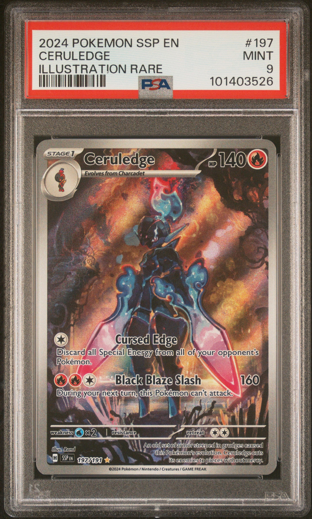 Game: Pokemon Year: 2024 Card Number: 197 Grade: PSA 9 Certification #: 101403526 Condition: Mint