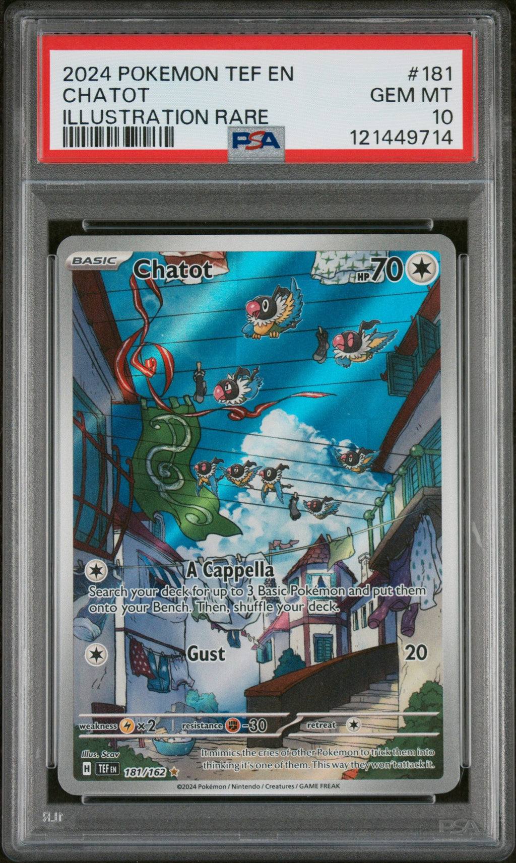 Card Number: 181 Category: Gaming Cards Condition: Gem Mint Set: 2024 Pokemon Tef En-Temporal Forces Type: Pokémon Trading Card Year: 2024 Game: Tcg Grade: PSA 10 Certification #: 121449714