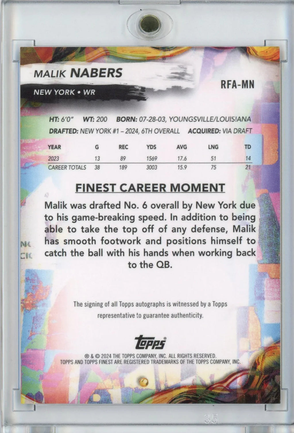 2024 Topps Finest Malik Nabers #RFAMN Autograph Rookie RC Football Card