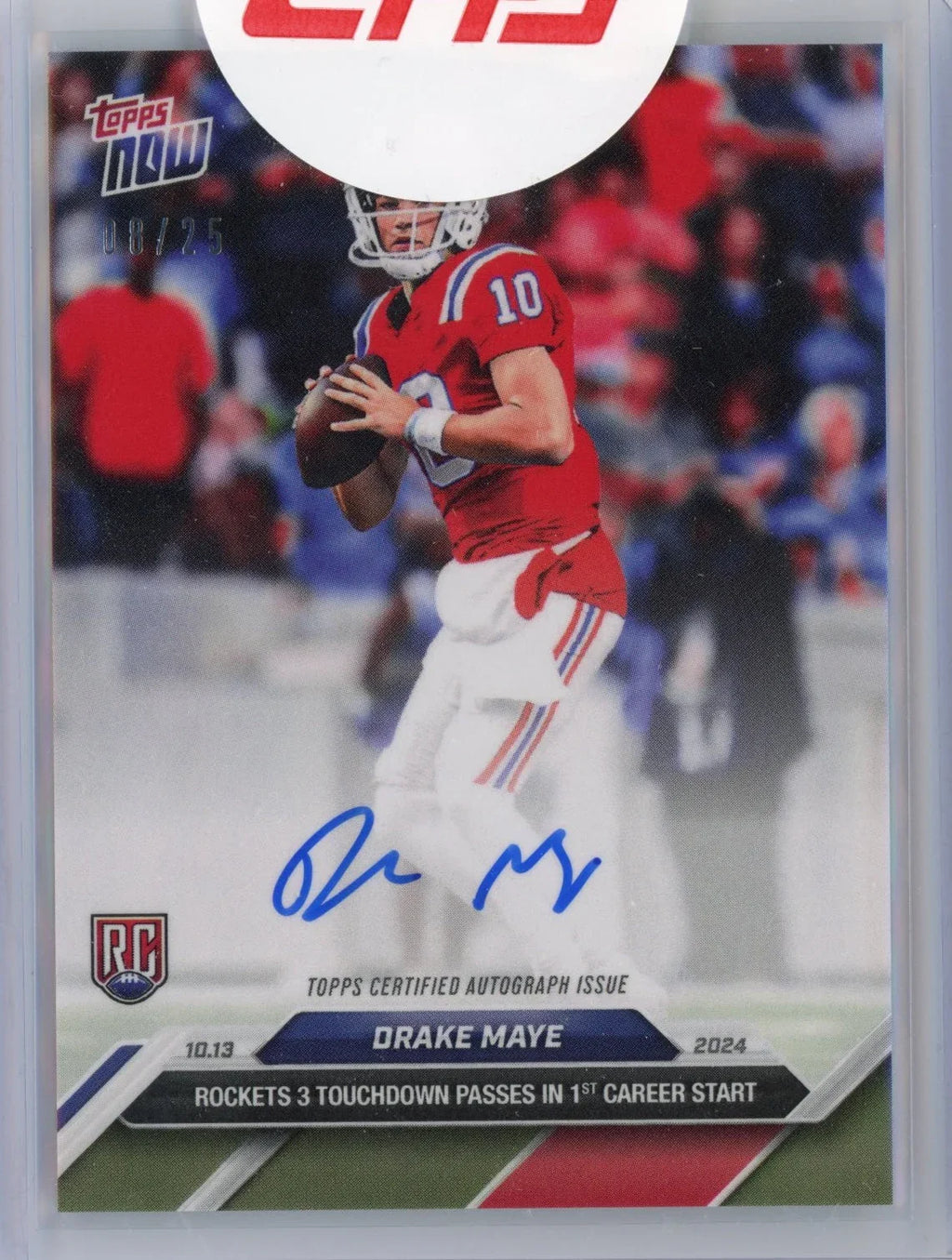 2024 Topps Now Drake Maye #10A Auto /25 Rookie RC Football Card