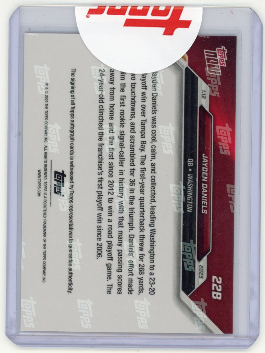 2024 Topps Now Jayden Daniels #22B 1st Playoff Win Orange Auto /5 Washington Commanders Rookie RC Football Card