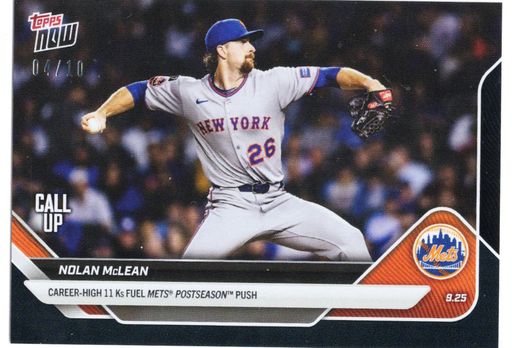 2025 Topps Now Nolan McLean #771 Black Foil /10 New York Mets Rookie RC Baseball Card