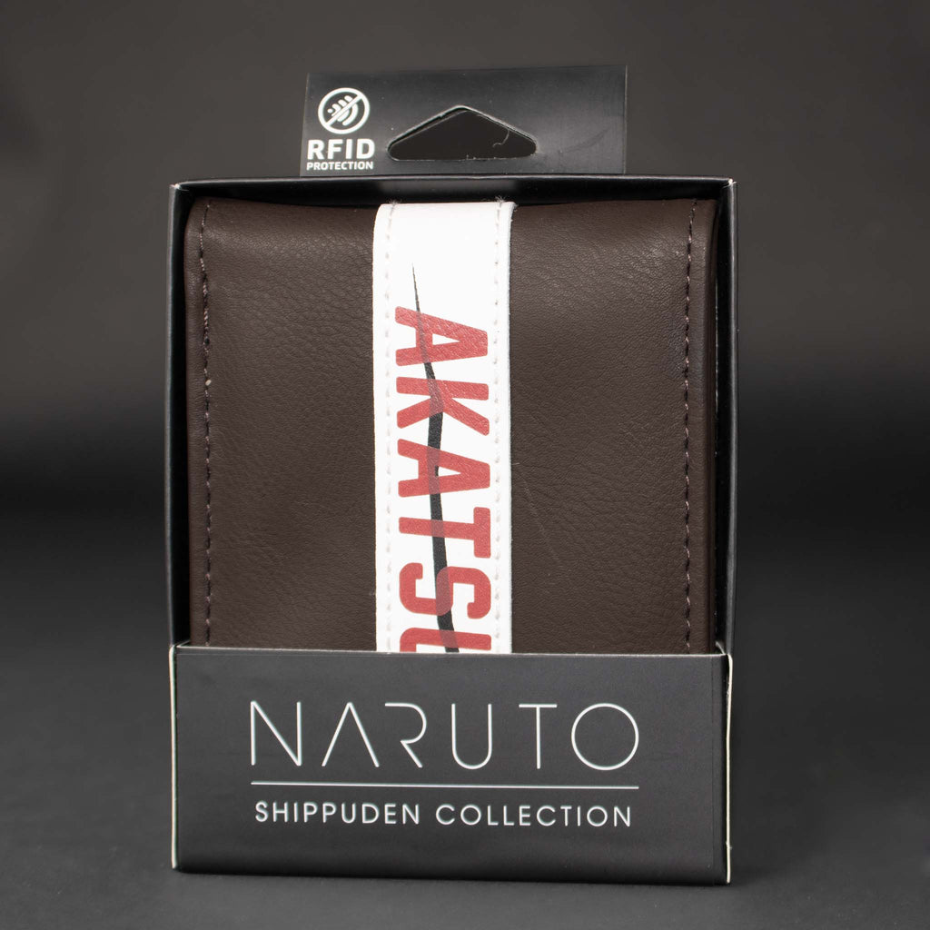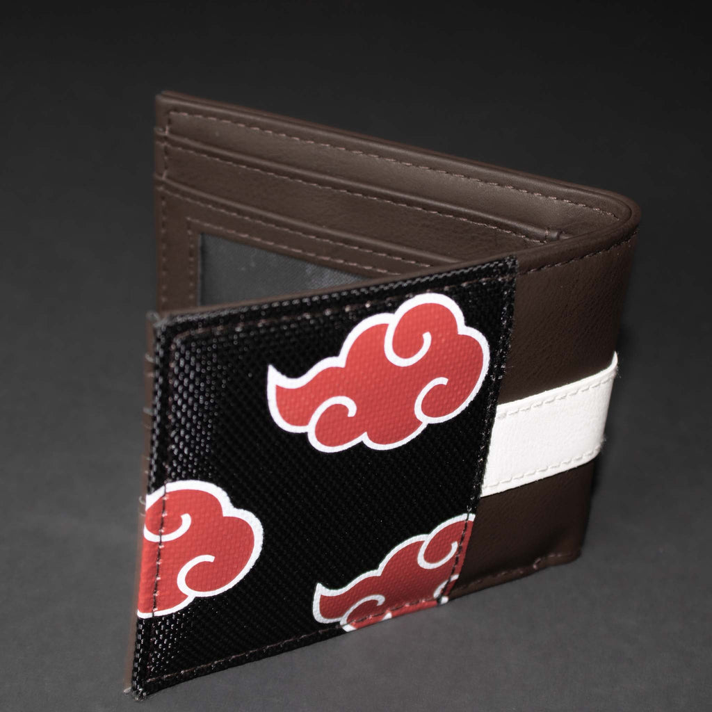 From the world of the Naruto Shippuden anime series comes this detailed faux leather wallet crafted in an Akatsuki design, with the Red Cloud logo printed on the back! This unisex wallet features mixed fabrics and textures inspired by the anime series. Wallet includes 4 card pockets, 1 transparent ID pocket, and 1 large bill pocket.