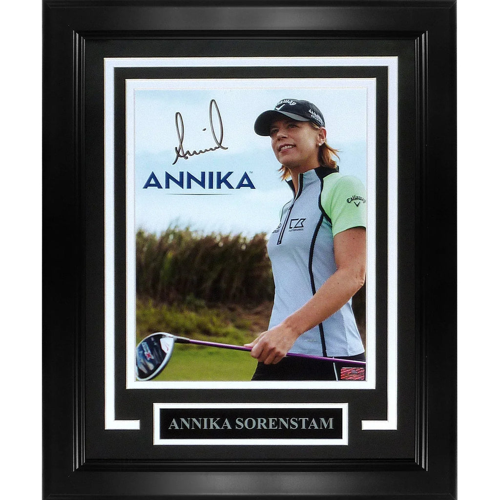 Golf lovers, get ready to add a unique and valuable item to your collection! This deluxe framed photo, hand-signed by the golf legend Annika Sorenstam, will make an impressive display in your home or office. Show off your passion for the game and own a piece of history with this special item!