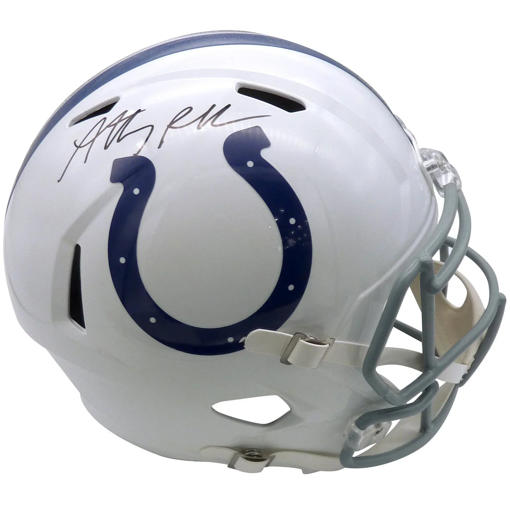 Get ready to show off your love for the Indianapolis Colts with this deluxe full-size replica helmet signed by Anthony Richardson! This helmet not only features a bold Colts design, but is also authenticated by Fanatics, ensuring its genuine value and making it a must-have for any dedicated fan.