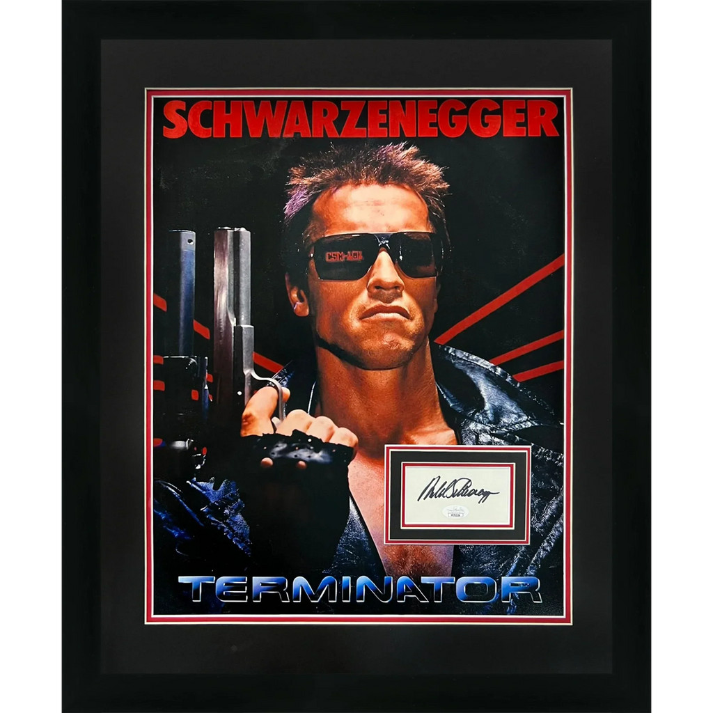 Own a piece of movie history with this deluxe framed 16x20 movie poster piece signed by the iconic Arnold Schwarzenegger himself! With a JSA authentication, this autographed memorabilia is a must-have for any Terminator fan. Display it proudly and relive all the action and excitement of the classic film.