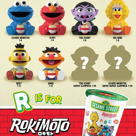 Step into the neighborhood with the Rokimoto Cup of Fun: Sesame Street Edition! Each blind cup features 1 of 8 collectible characters, including Bert, Ernie, Elmo, Cookie Monster, The Count, & Big Bird. Every figure is crafted with charm & personality, making them perfect for fans of all ages. Hidden in the lineup are two ultra-rare chase figures—an alternate Count (1/48) & a special Cookie Monster (1/96)—that bring extra excitement to every unboxing. Will you collect the whole street… or discover a Super Slurprise?