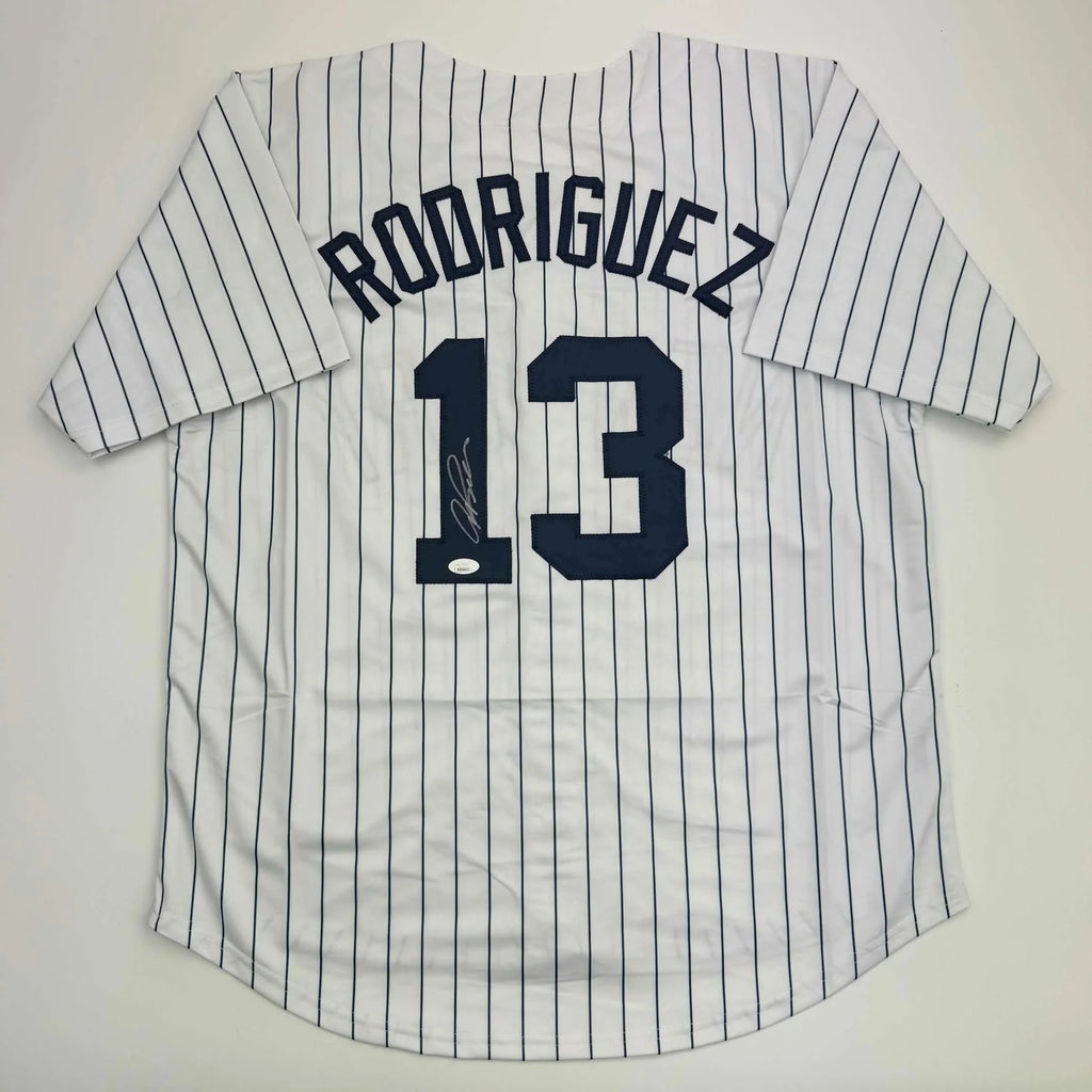 Autographed/Signed Alex Rodriguez New York Pinstripe Baseball Jersey JSA COA