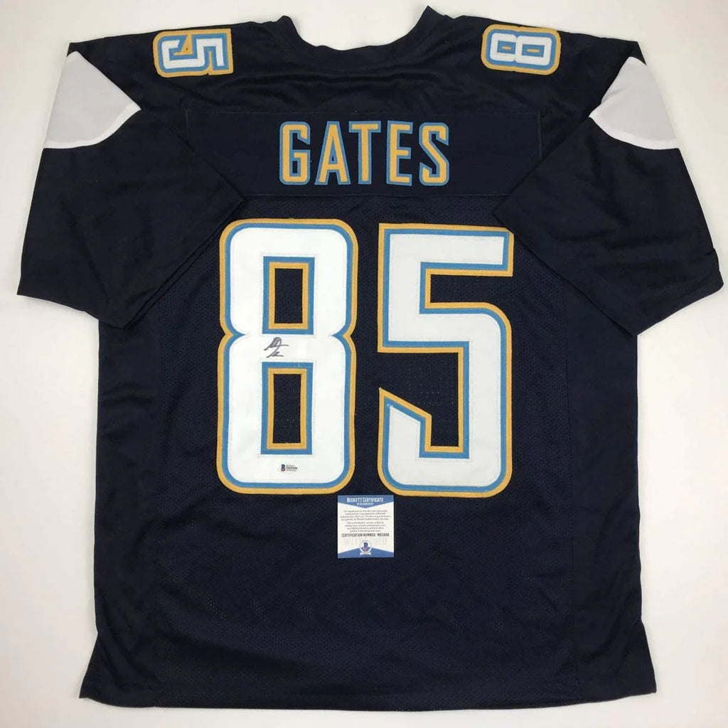 Autographed/Signed Antonio Gates Los Angeles LA Dark Blue Football Jersey Beckett BAS COA