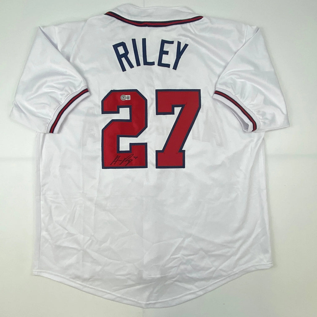 Autographed/Signed Austin Riley Atlanta White Baseball Jersey Beckett BAS COA