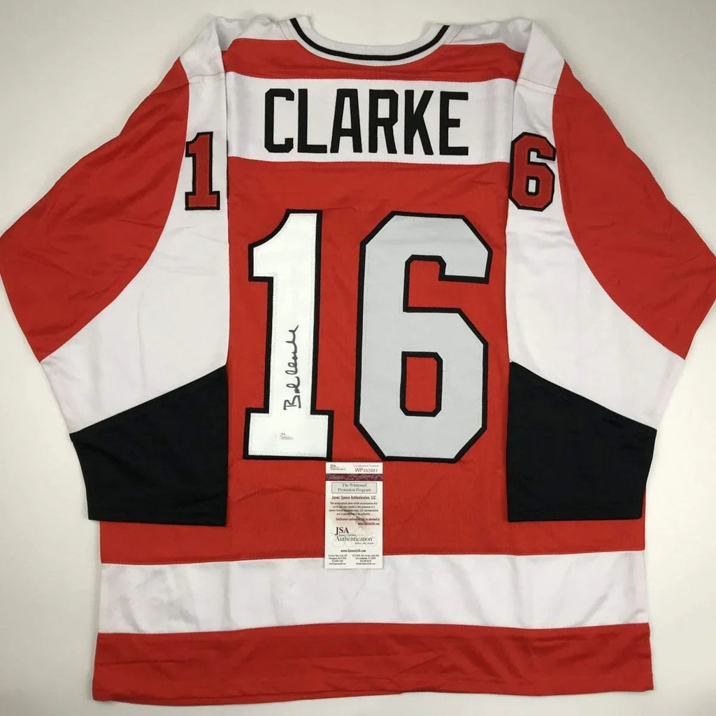 Autographed/Signed Bob Bobby Clarke Philadelphia Orange Hockey Jersey JSA COA