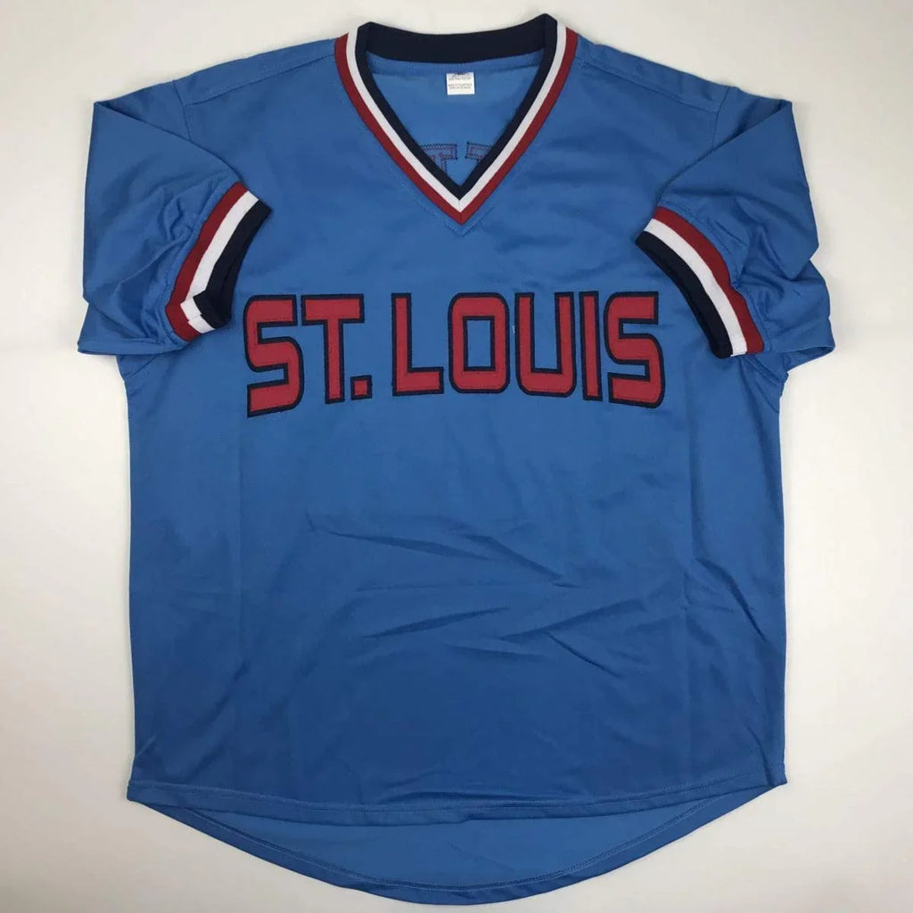 Autographed/Signed Bruce Sutter HOF 06 St. Louis Blue Baseball Jersey JSA COA
