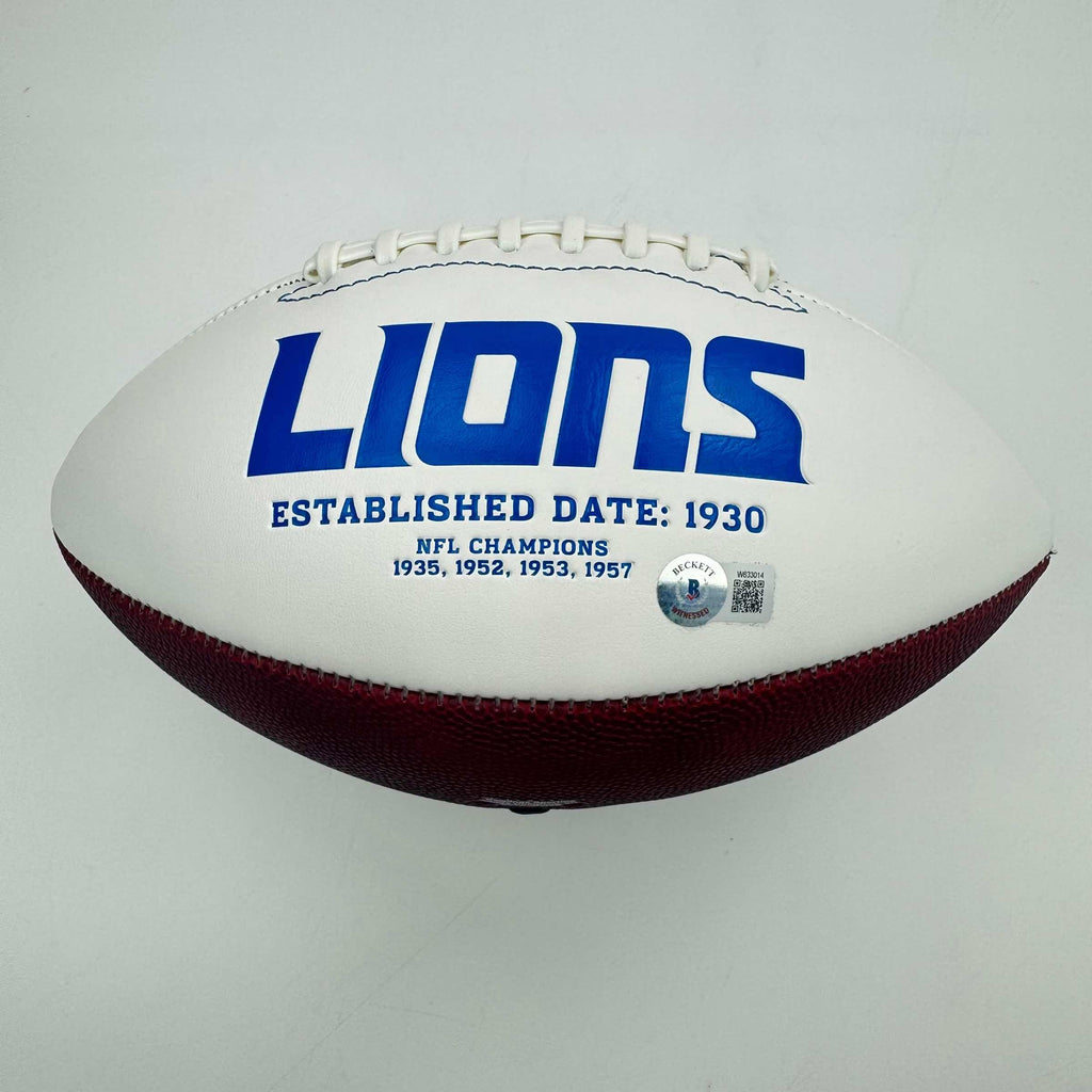 Autographed/Signed Calvin Johnson Detroit Lions Full Size F/S White Panel Logo Football Beckett COA