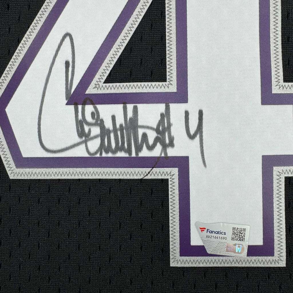Autographed/Signed Chris Webber Sacramento Black Basketball Mitchell & Ness Jersey Fanatics COA
