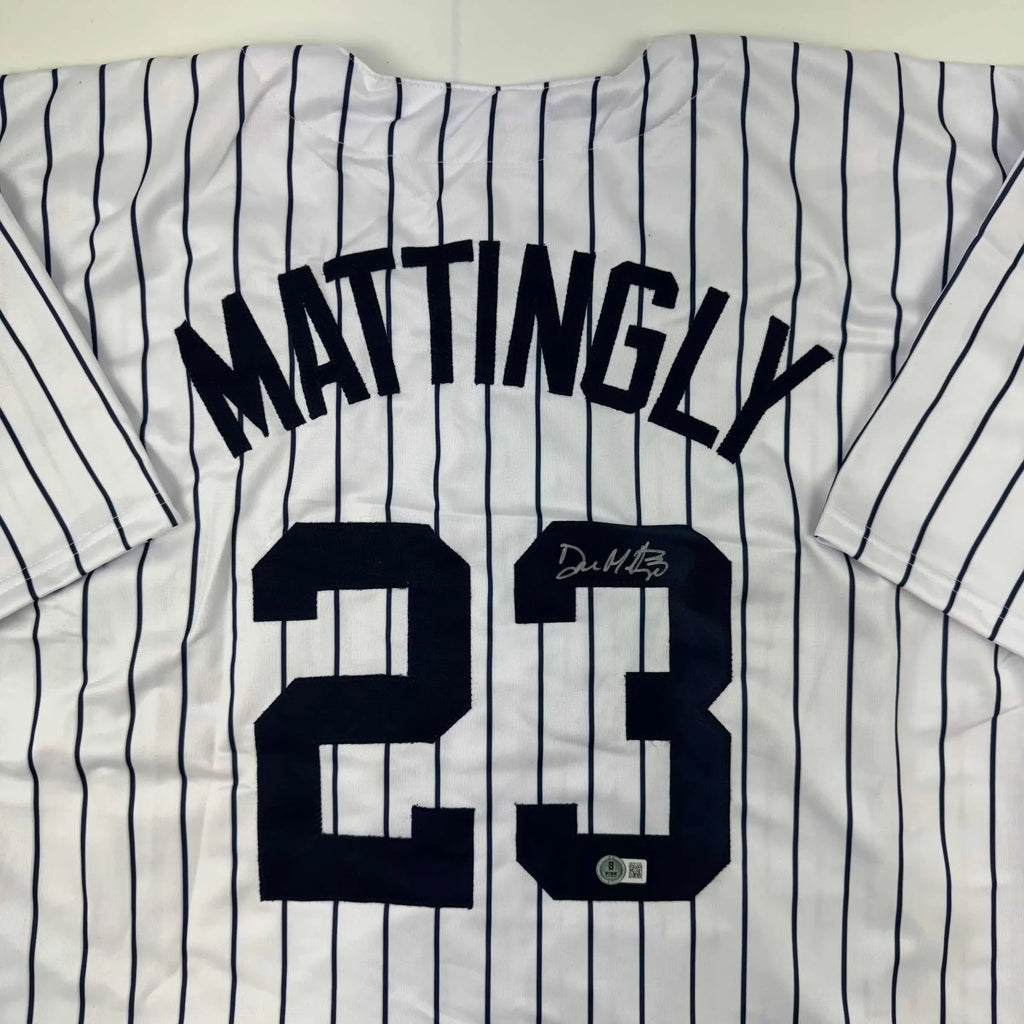 Autographed/Signed Don Mattingly New York Pinstripe Baseball Jersey Beckett BAS COA