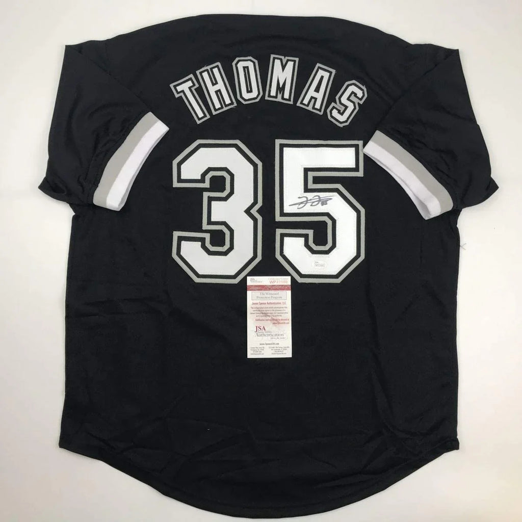 Autographed/Signed Frank Thomas Chicago Black Baseball Jersey JSA COA