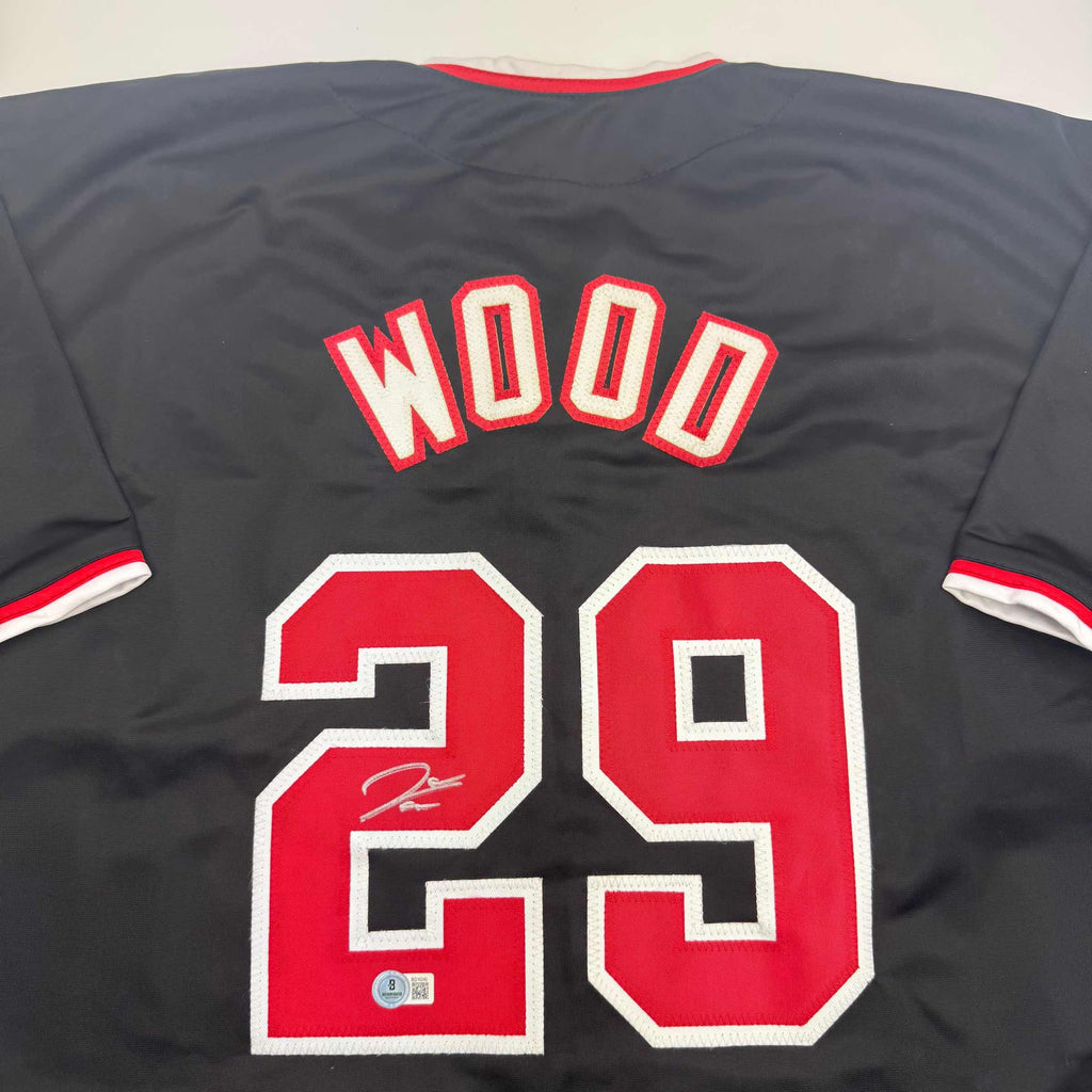 Autographed/Signed James Wood Washington Black Baseball Jersey Beckett BAS COA