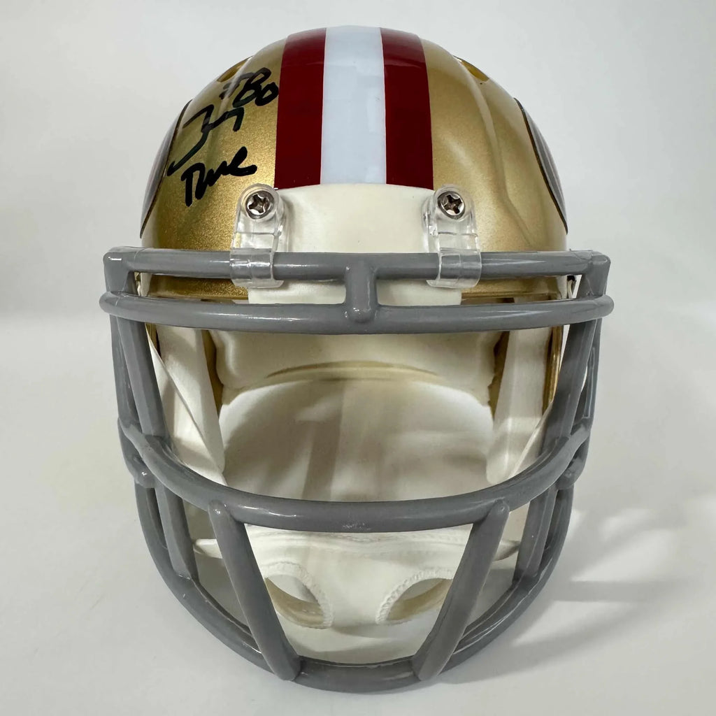 Autographed/Signed Joe Montana & Jerry Rice Dual San Francisco 49ers Football Mini Helmet Fanatics COA