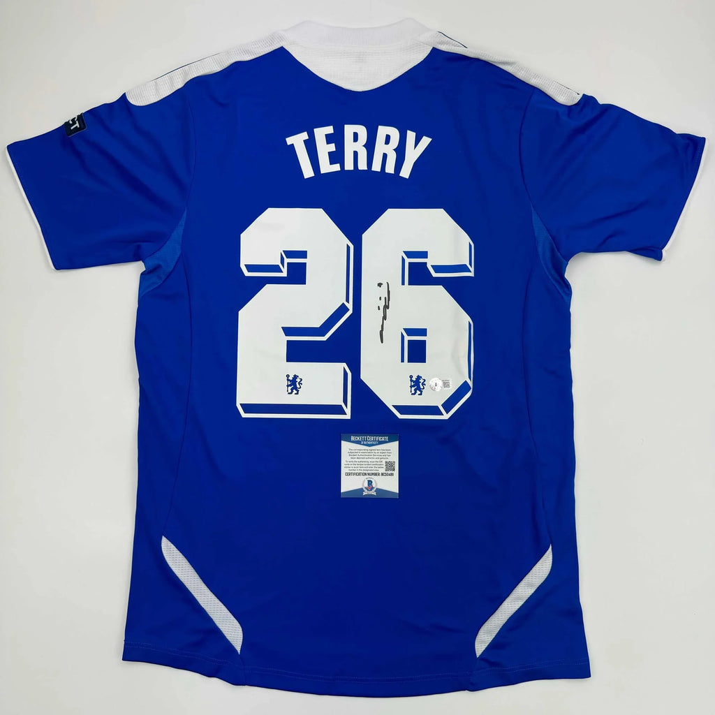 Autographed/Signed John Terry Chelsea FC 2012 Final Blue Soccer Futbol Jersey Beckett BAS COA