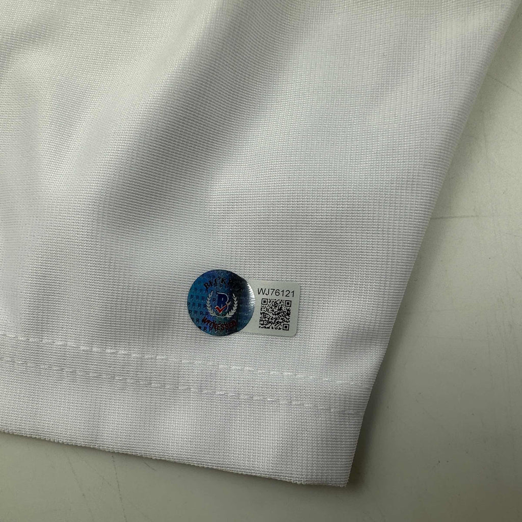 Autographed/Signed Jon Bones Jones Black UFC MMA White Trunks Ultimate Fighting Beckett BAS COA