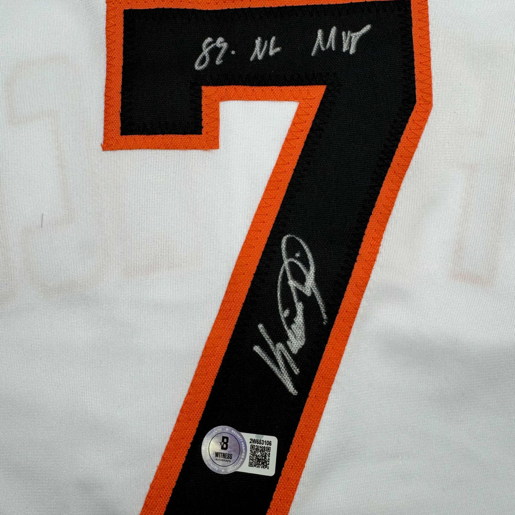 Autographed/Signed Kevin Mitchell "89 MVP" San Francisco White Baseball Jersey Beckett BAS COA