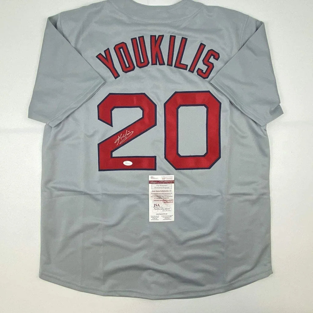 Autographed/Signed Kevin Youkilis Boston Grey Baseball Jersey JSA COA