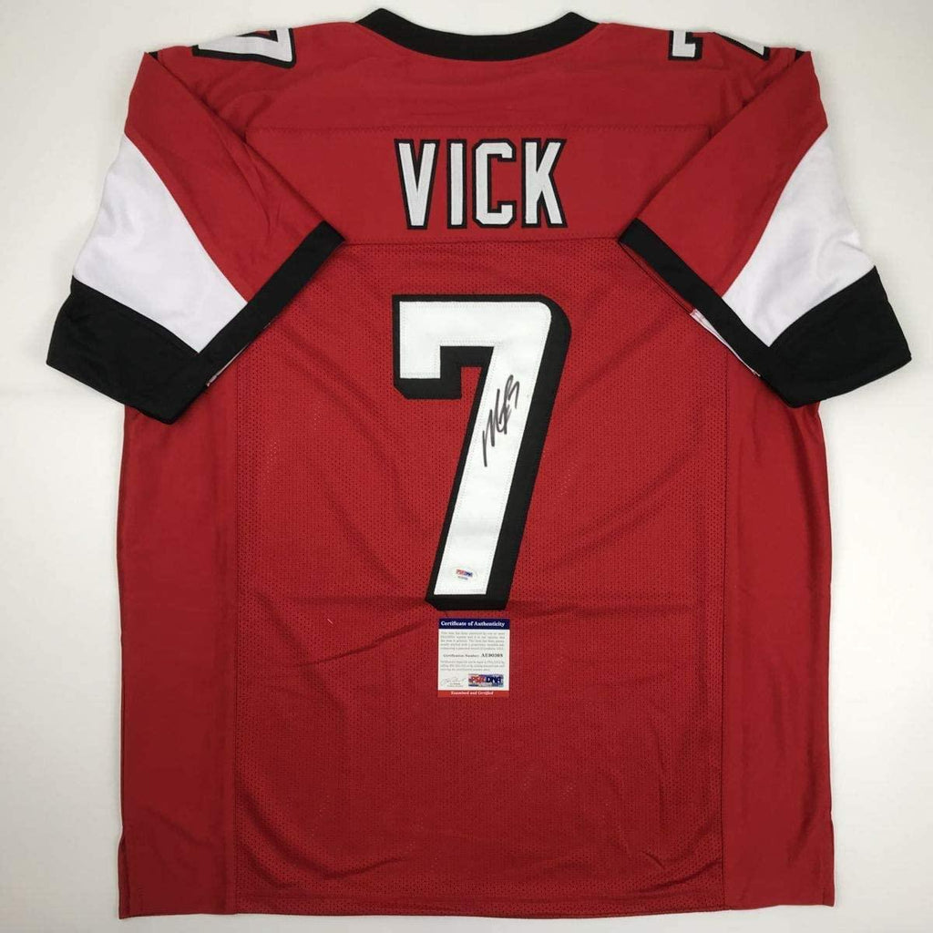 Autographed/Signed Michael Mike Vick Atlanta Red Football Jersey PSA/DNA COA