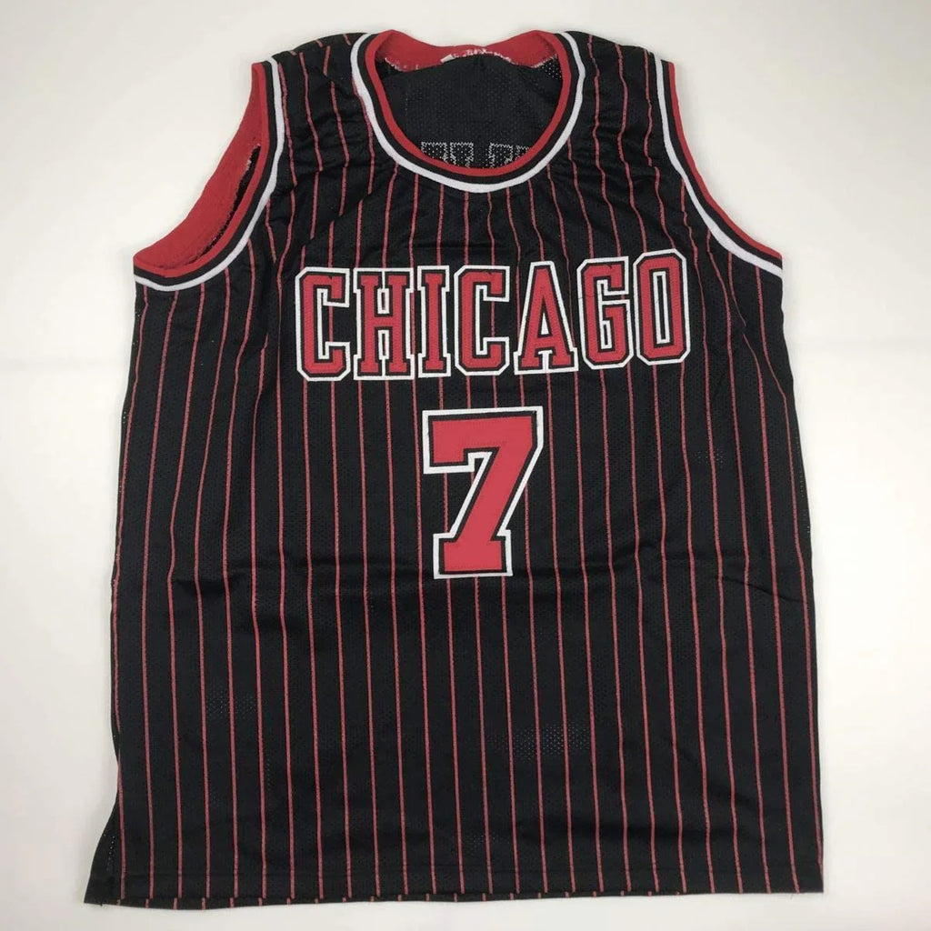 Autographed/Signed Toni Kukoc Chicago Black Pinstripe Basketball Jersey Beckett BAS COA