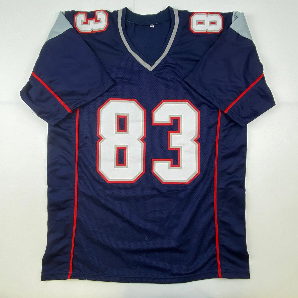 Autographed/Signed Wes Welker New England Blue Football Jersey Beckett BAS COA